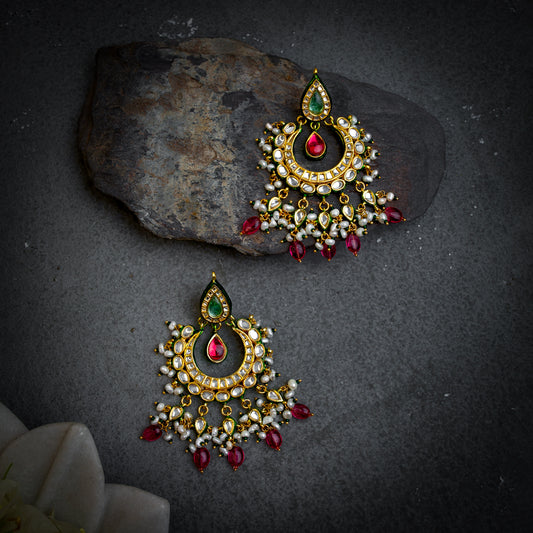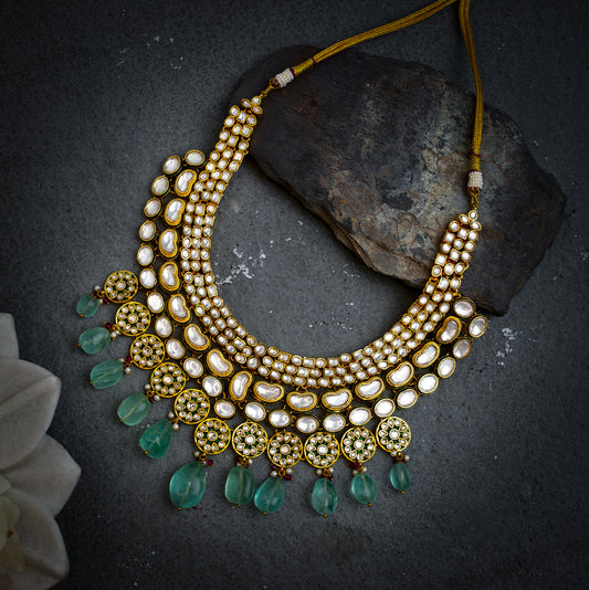 Mazhar Handcrafted Silver Alloy Necklace With Fluorite Stone And Kundan