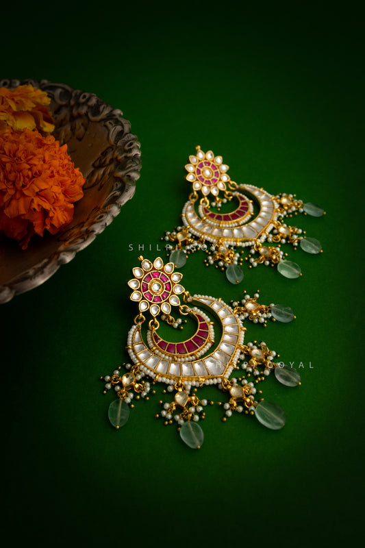 Mazhar Handcrafted Silver Alloy Necklace With Fluorite Stone And Kundan