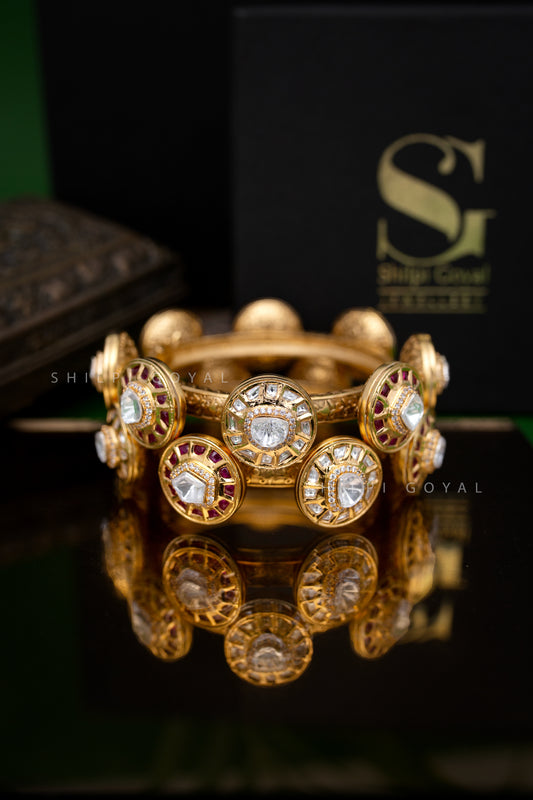 Moissanite polki gold bangle