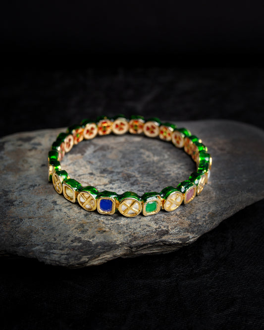 Polki Green Meena Openable Bangle