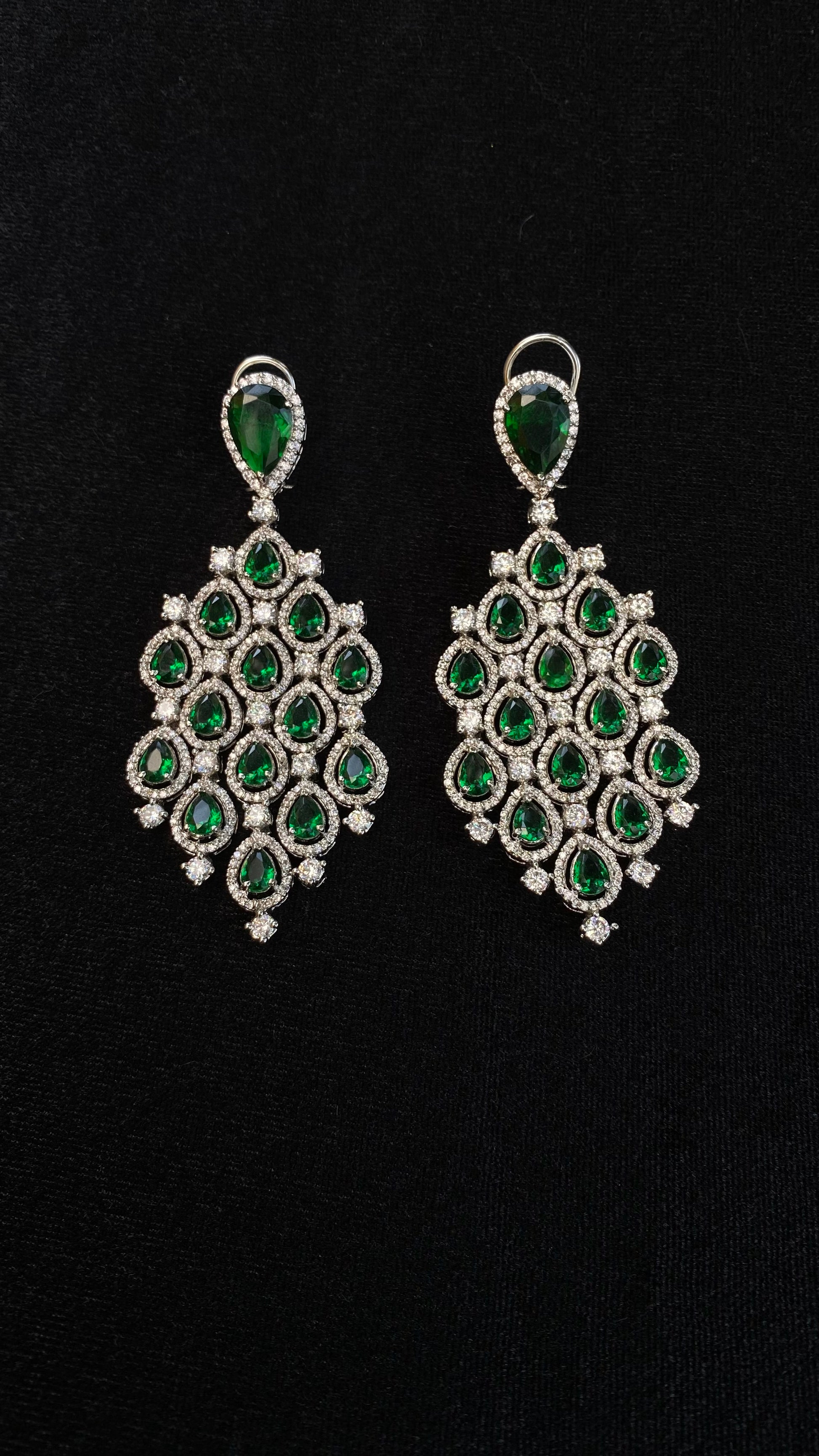This chandelier earring is meticulously handcrafted with semi-precious stones and zircons, set on a metal base with rhodium gold plating. The exceptional craftsmanship and high-quality plating guarantee years of enduring brilliance. Perfect for a cocktail evening, it adds a touch of glamour to elevate your look.